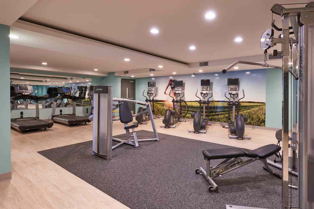 Gym amenities may feature state-of-the-art equipment basketball group fitness classes pool saunas Kids Klub.